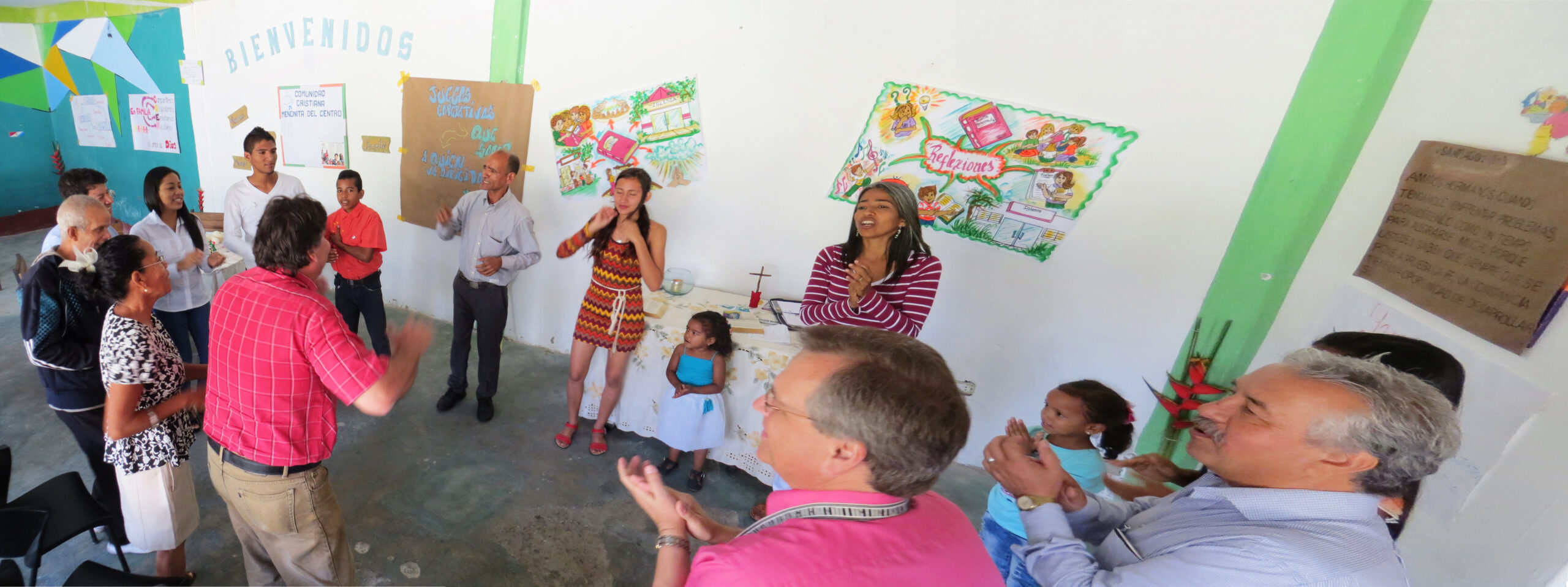 Believers from three countries gathered around the communion table in Yaracuy, Venezuela. Erwin Mirabal, president of the Venezuelan Iglesia Evangélica Menonita de Oriente (Evangelical Mennonite Church of the East), reflected with the group on how many of Jesus’ experiences revolved around a table and sharing food. He emphasized how reading the Bible from an Anabaptist perspective guides their church’s response in an economy that leaves more than half of the population under-nourished, calling it Jesus’ "theology of the table."