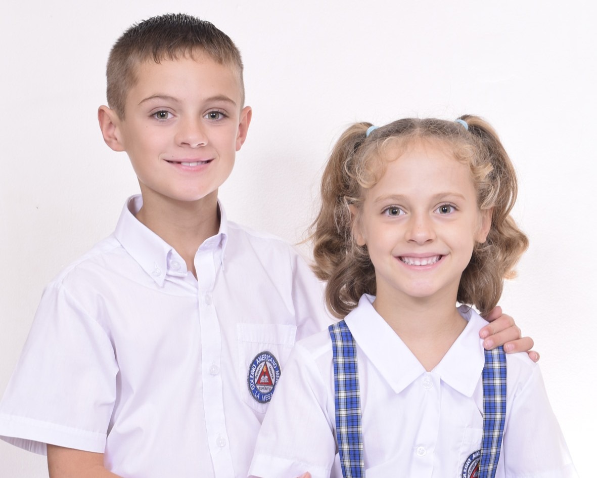 From left: Jesse and Brielle Sharp are photographed in their Colegio Americano Menno school uniforms. Photo by Angela Rivera, Digicolor La Mesa.
