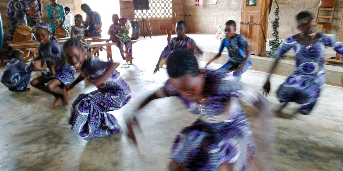 ​Children dance during a worship service at La Casa Grande