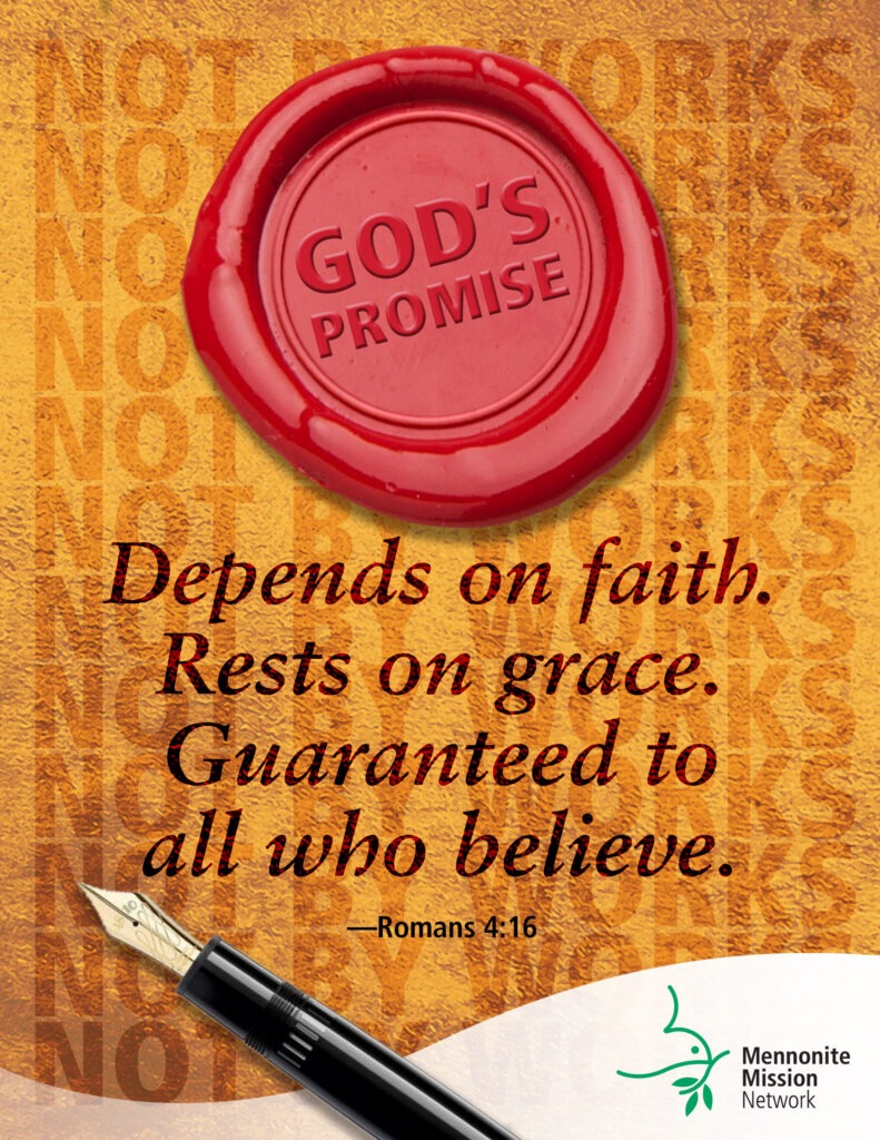 For this reason it depends on faith, in order that the promise may rest on grace and be guaranteed to all his descendants, not only to the adherents of the law but also to those who share the faith of Abraham (for he is the father of all of us.)
